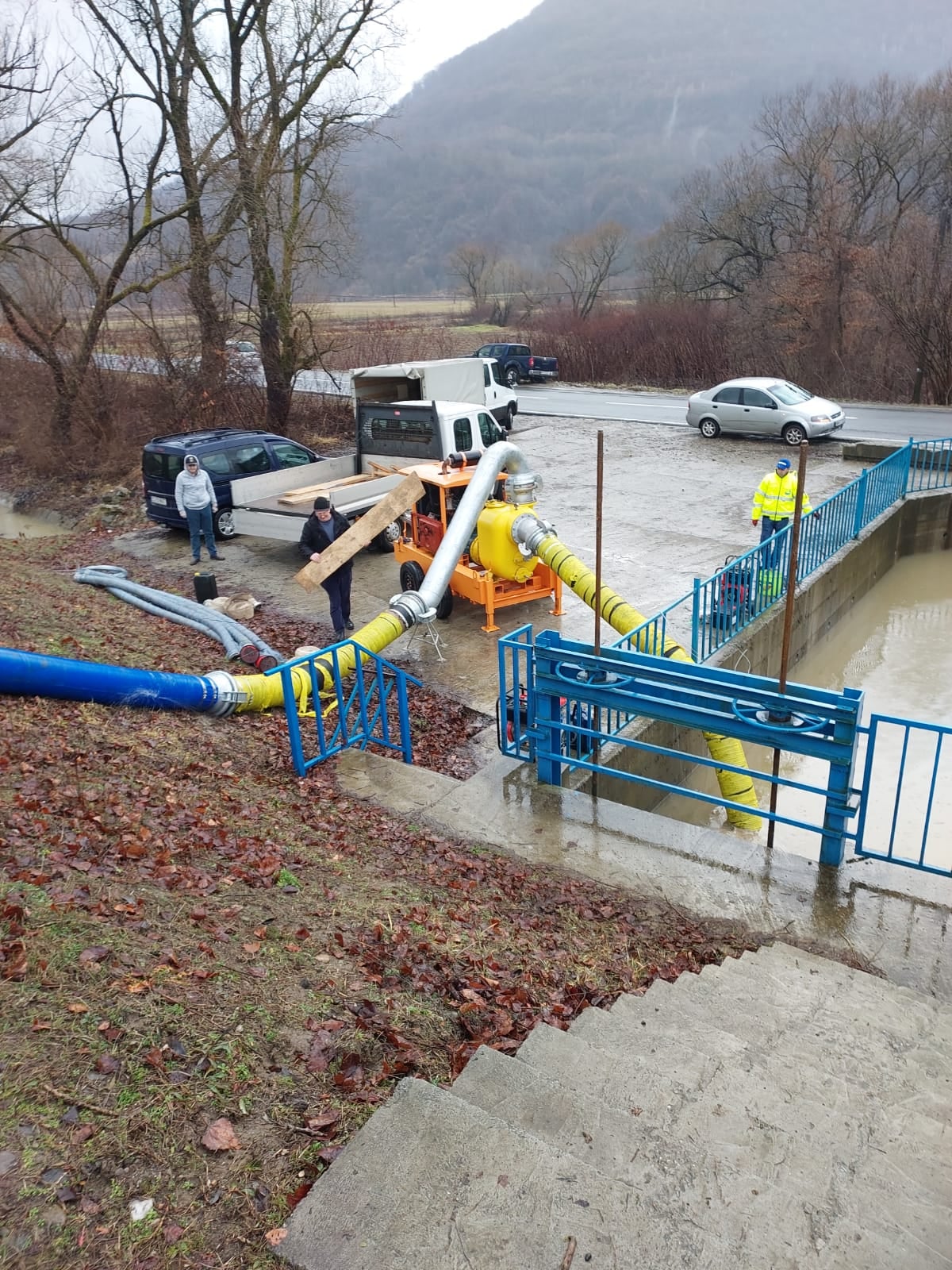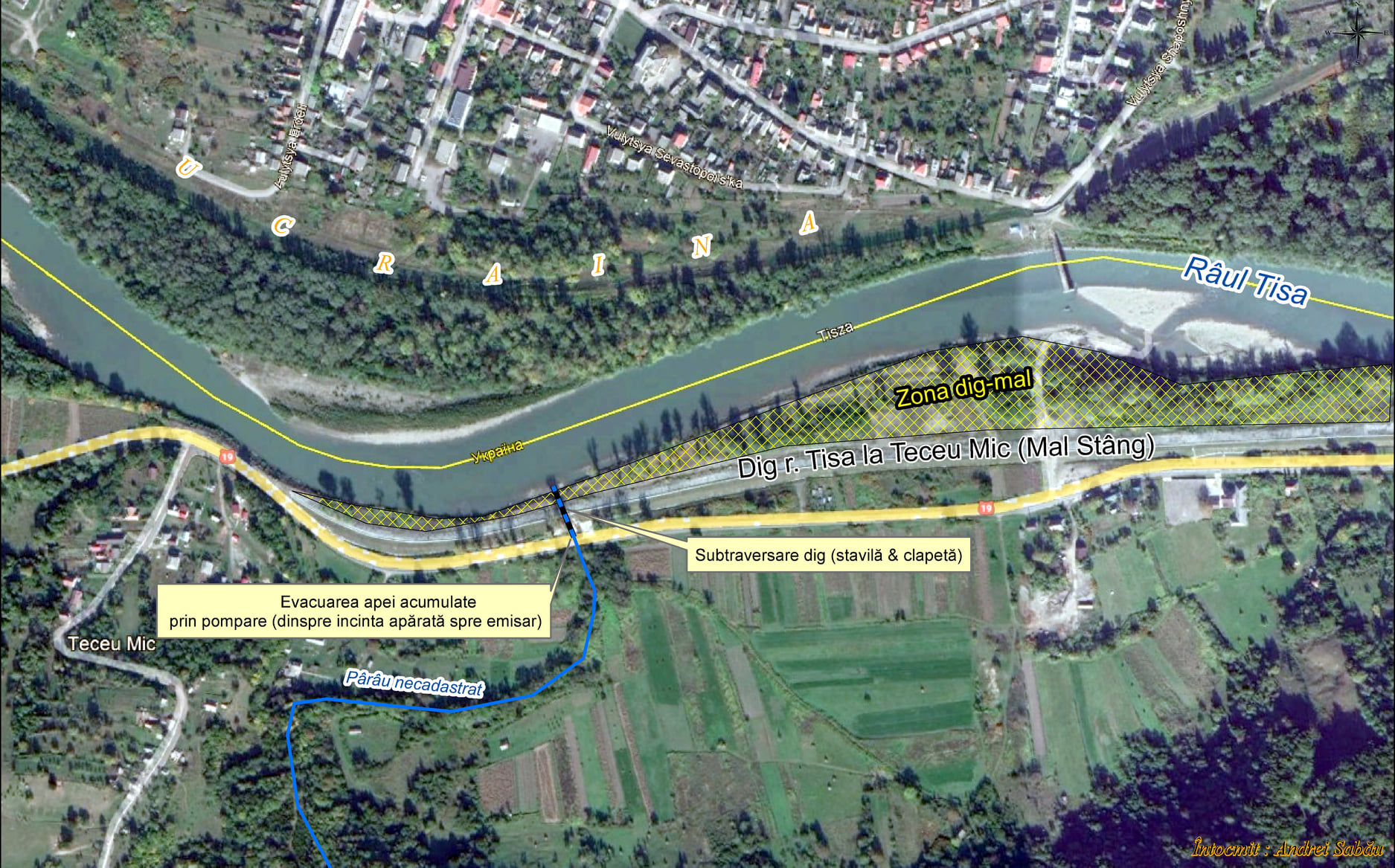 „Din cauza nivelului ridicat al râului Tisa, apa acumulată în spatele digului (în incinta apărată) nu se mai scurgea în mod natural în cursul de apă. Prin urmare, exista pericolul inundării terenurilor agricole, a drumului național DN 19 și a obiectivelor socio-economice. De aceea, a fost nevoie ca apa acumulată în spatele digului să fie pompată în râul Tisa.