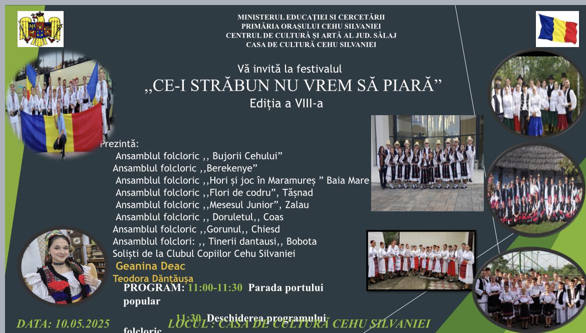 În 10 mai, în Cehu Silvaniei se va desfășura cea de-a VIII-a ediție a Festivalului „Ce-i străbun nu vrem să piară”.
