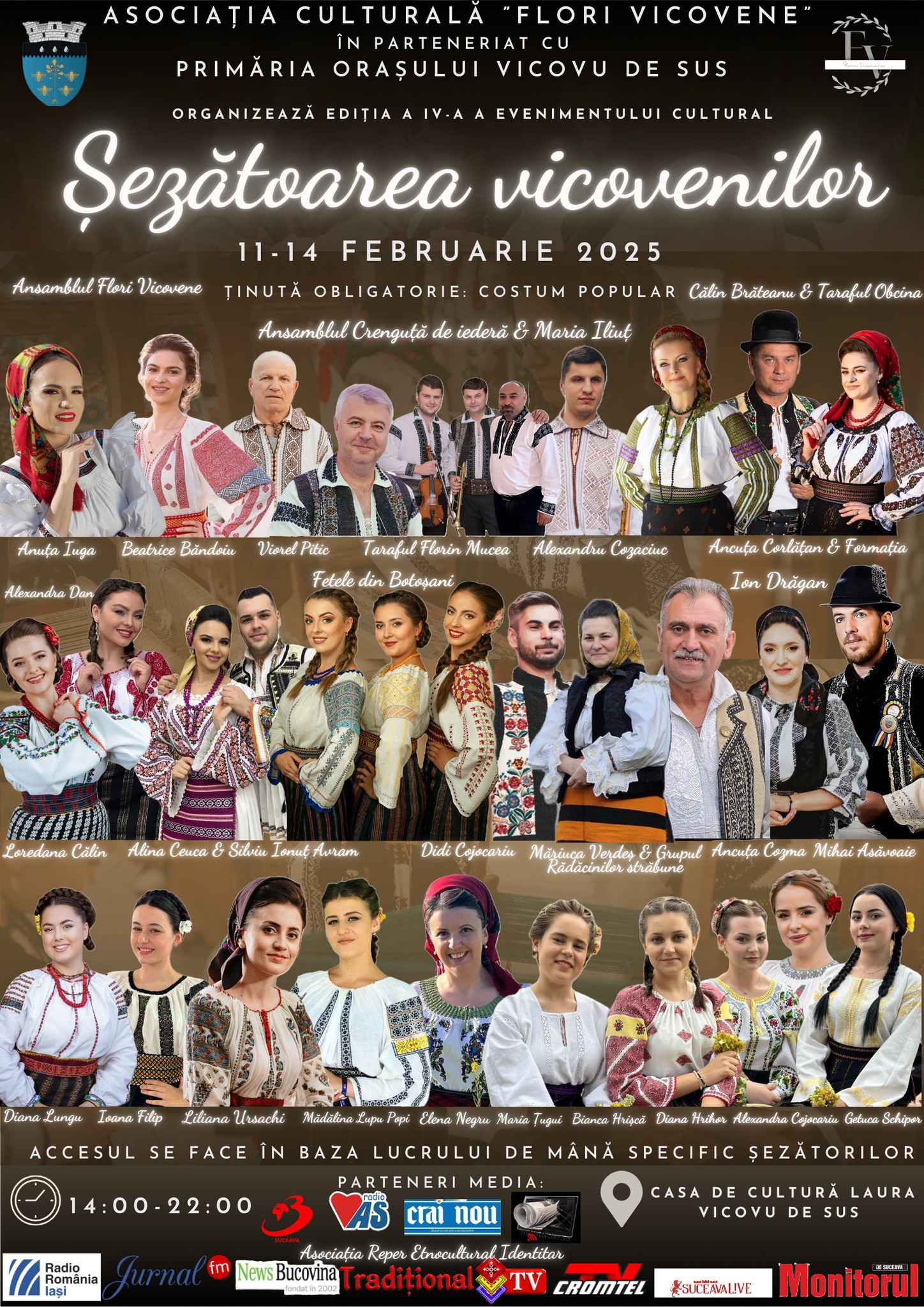 În perioada 11 – 14 ianuarie, în Vicovu de Sus, Suceava, va avea loc cea de-a IV-a ediție a evenimentului „Șezătoarea vicovenilor”.