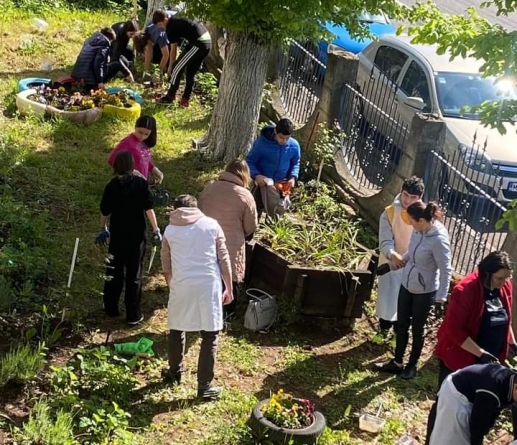 Elevii Școlii nr. 18 au plantat flori alături de tinerii de la „Esperando”