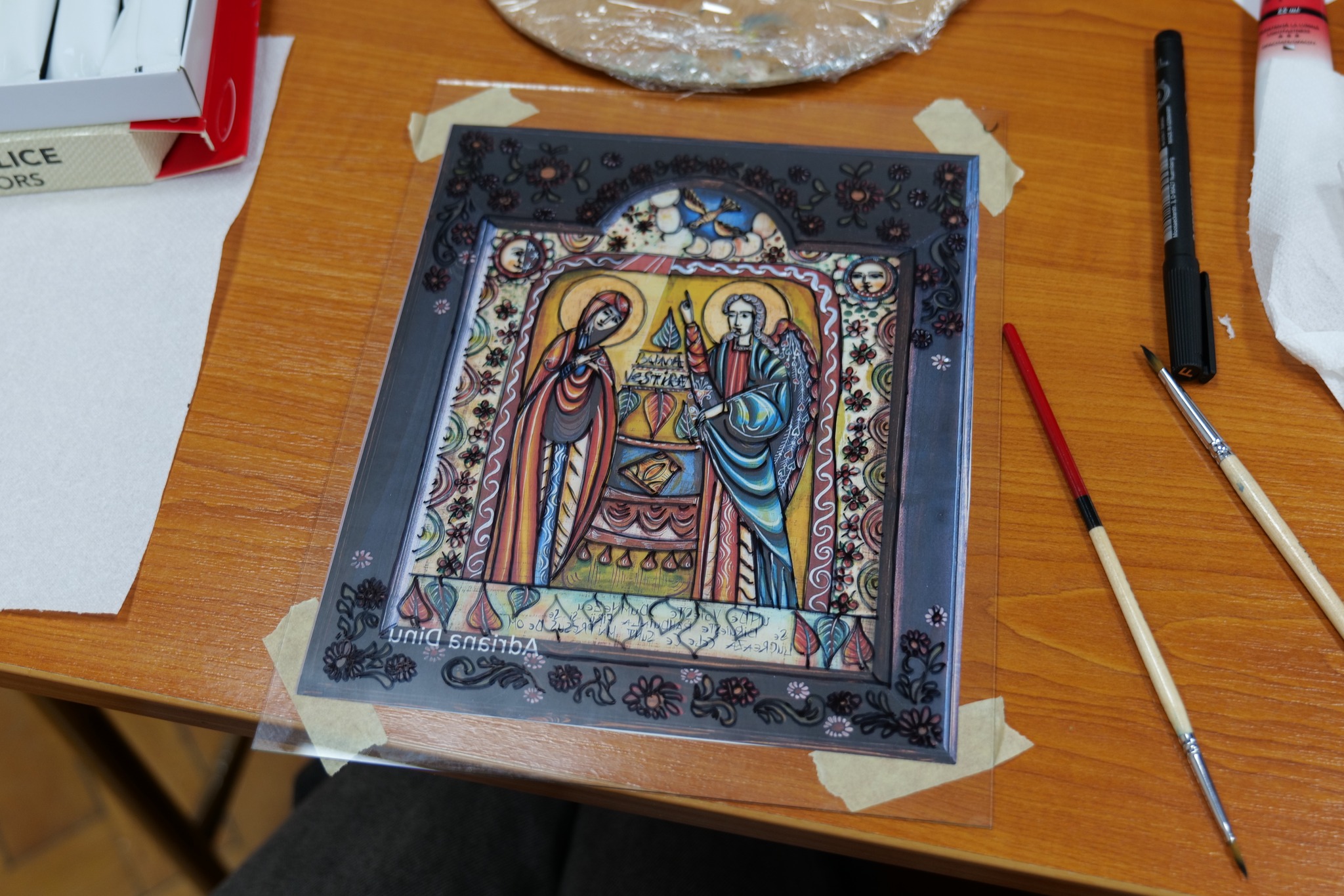 Participanții de diferite vârste au fost fascinați de întreaga activitate, fiind inițiați în tainele reprezentării scenelor biblice prin pictură pe sticlă.