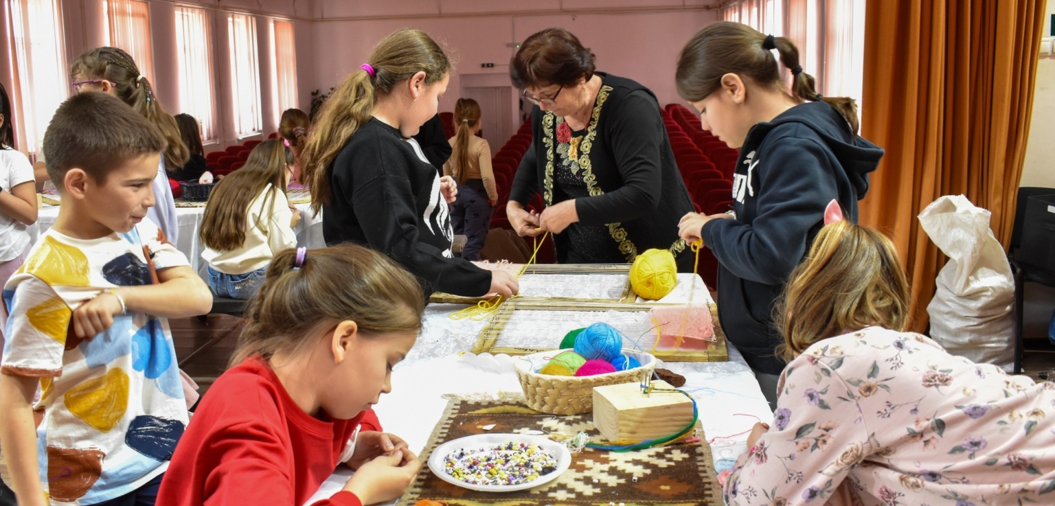 Meșterul popular Ioana Cosma le-a împărtășit copiilor din Târgu Lăpuș tainele țesutului zadiilor