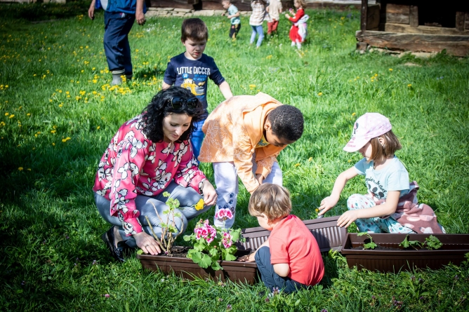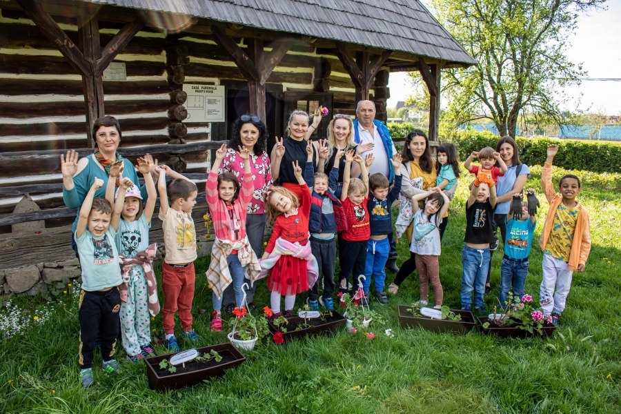 Micuții de la Grădinița nr. 13 din Baia Mare au plantat flori la Muzeul Satului