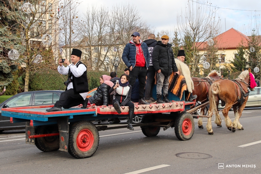 Evenimentul a debutat cu o paradă în care s-au reunit colindători din mai multe localități ale județului nostru. Alaiul condus de căruțe trase de cai a parcurs traseul dintre Palatul Administrativ și Muzeul Satului, spre încântarea spectatorilor.
