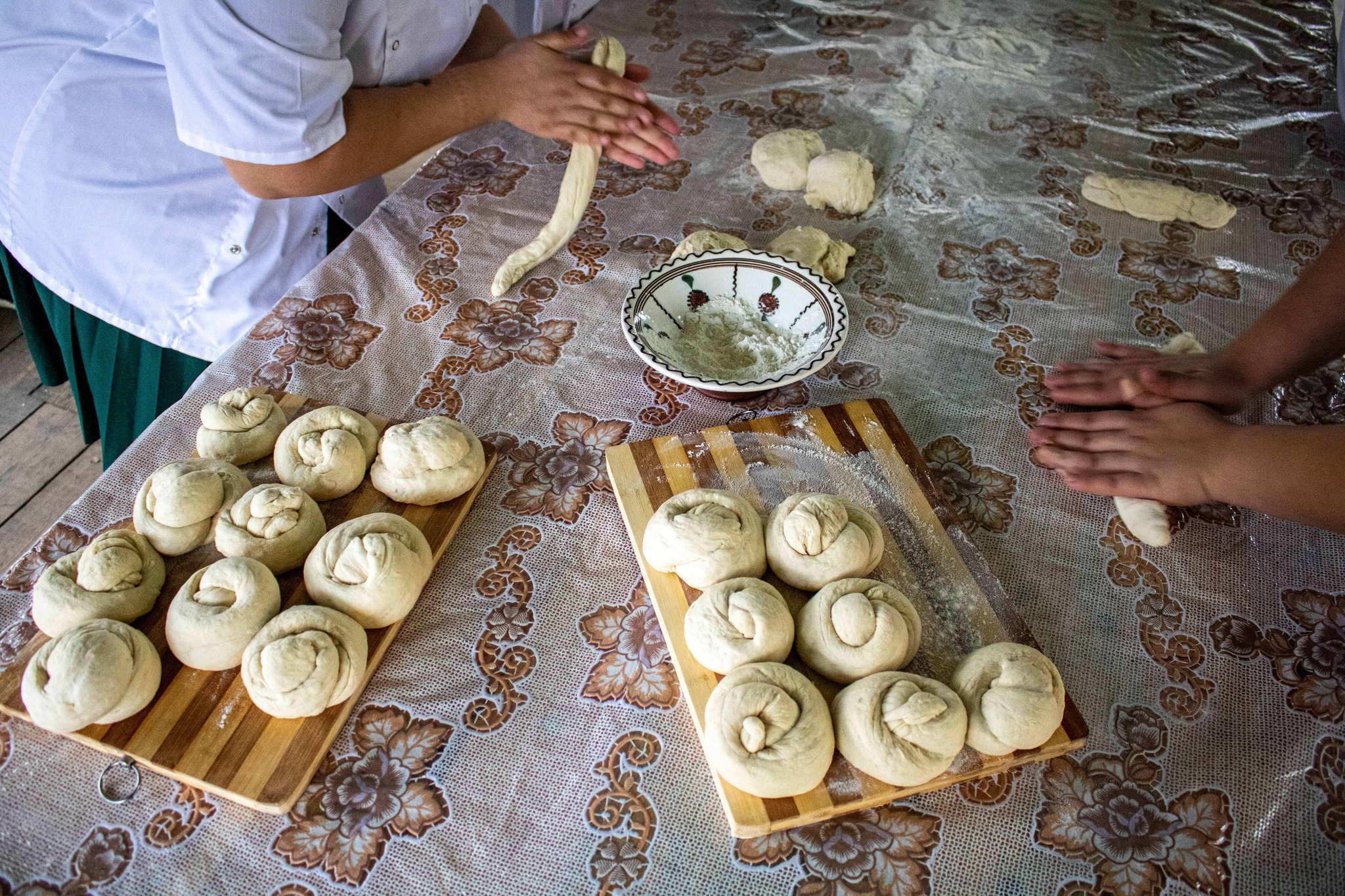 Tinerii au pregătit legumele, le-au pus la călit, au adăugat carnea, iar la final rezultatul s-a dovedit a fi mai mult decât delicios. În tot acest timp, aluatul pentru cocuți a dospit și a fost numai bun de modelat și de băgat în cuptorul încins.