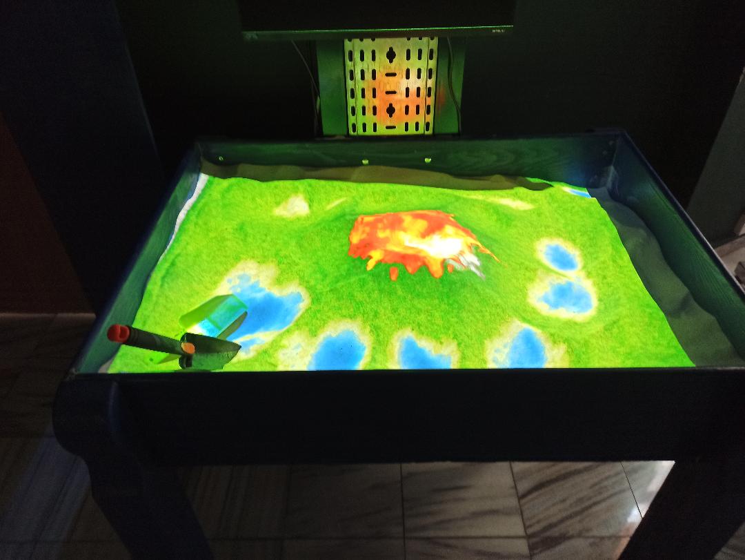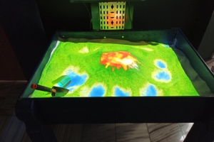 Prin intermediul tehnologiei AR (realitatea augmentată) au fost recreate modul de funcționare a unui vulcan sau procesul de descoperire a unor fosile, fie ele de dinozaur, mamut sau broască țestoasă. Dispozitivul constă dintr-o parte materială reprezentată de un nisip special (mediul real) și o parte de generare electronică a imaginilor (partea virtuală).