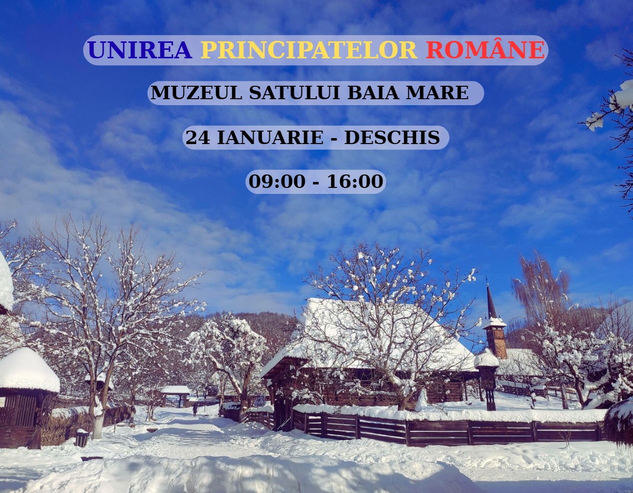 În acest weekend, Muzeul Satului Baia Mare își așteaptă vizitatorii cu porțile deschise atât sâmbătă, 24 ianuarie, zi cu profundă semnificație istorică pentru România, cât și duminică, între orele 09:00 și 16:00, ultima intrare fiind permisă la ora 15:30.
