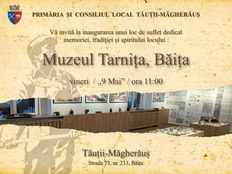 „Cu bucurie, vă invităm la deschiderea Muzeului Țarnița, Băița din Tăuții-Măgherăuș – un loc al oamenilor de seamă, al amintirilor și al poveștilor scoase la lumină din adâncul pământului.