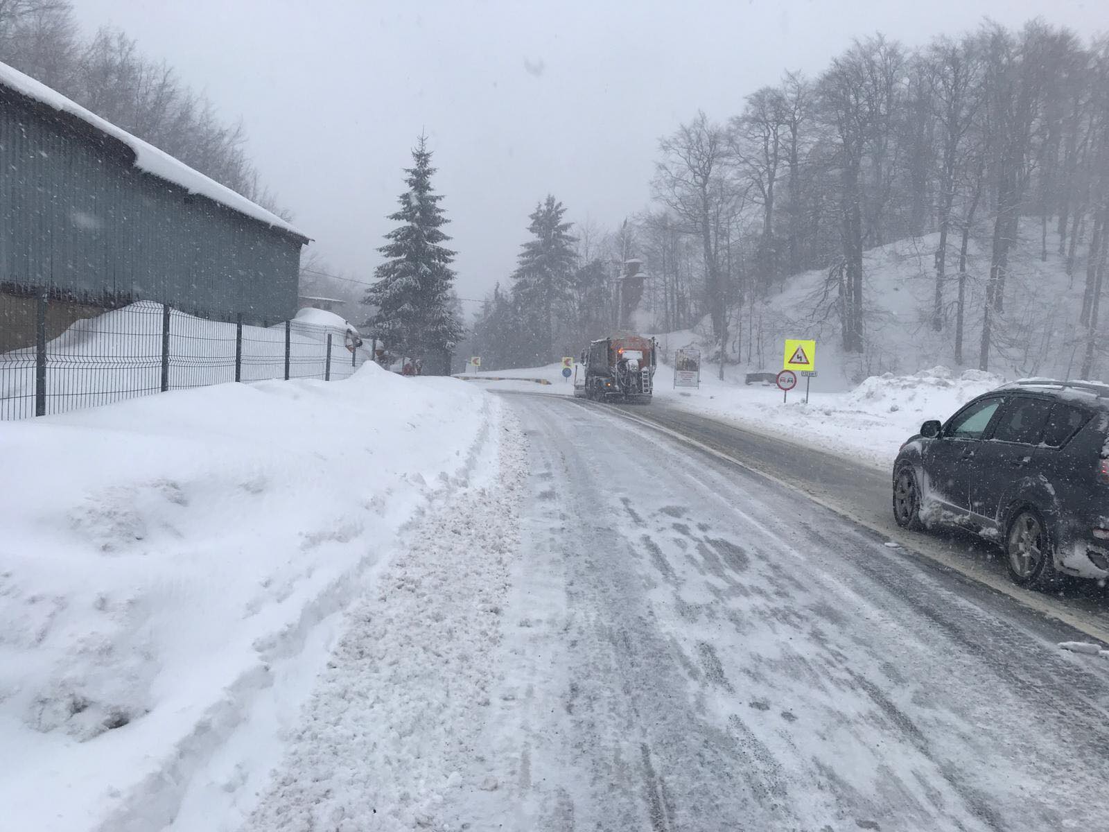 Angajatii sectiei de drumuri nationale au intervenit cu 19 utilaje si au imprastiat 128 tone de material antiderapant. Pe sectoarele de drumuri judetene s-a actionat cu 36 de utilaje si s-au raspandit 351 tone de material antiderapant. Cerul este acoperit, ninge in judet. Vizibilitatea in trafic este buna, vantul prezinta intensificari temporare in zona inalta de munte, unde viscoleste ninsoarea si spulbera zapada. Sunt utilaje in trafic care actioneaza la deszapezire.