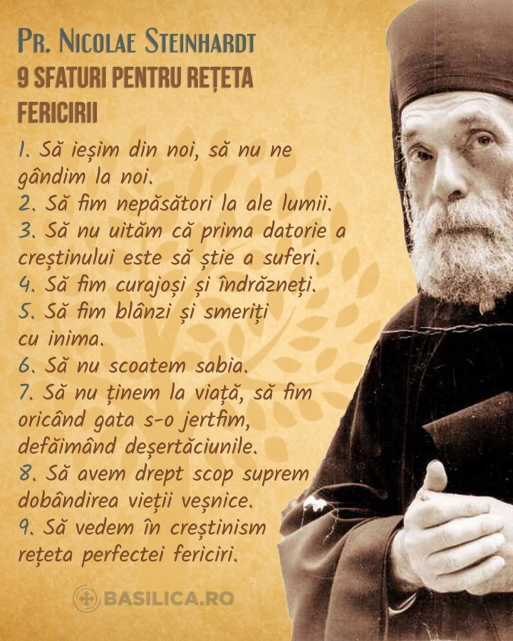 Nouă sfaturi pentru rețeta fericirii de la Părintele Nicolae Delarohia