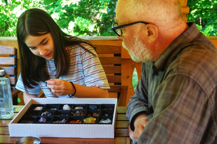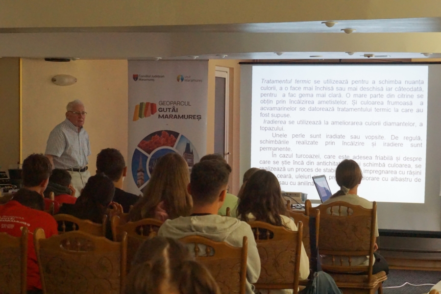 Elevii au făcut, de asemenea, o incursiune printre minunățiile pământului maramureșean și ocurențele de minerale, învățând despre calcedonia de pe Valea Roșie, jaspul de pe Valea Vălinelor, cuarțul de pe Valea Neagră, gheizeritul din Ilba, rodocrozitul din Cavnic și ametistul din Dănești, alături de „mineralogul amator de top” Alexandru Costin. Acesta a adus și două cutii cu el: o cutie cu minerale din Geoparcul Gutâi-Maramureș și una cu minerale din lumea largă, material didactic și prilej pentru un joc de cultură generală.