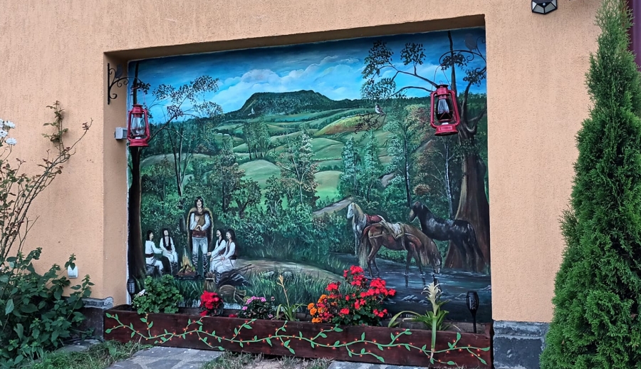 Nu e uitat: Pe fațada unei pensiuni din Țara Lăpușului a fost pictată o secvență din drumul lui Pintea Viteazul spre muntele Șatra