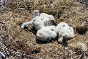 O altfel de misiune: Trei pui de barză, salvați de pompieri după ce au căzut din cuib (FOTO)