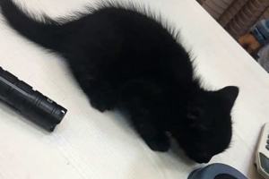 O intervenție mai deosebită: Astăzi, un puiuț de pisică salvat în Baia Mare de pompieri după ce a rămas captiv într-un perete de rigips, într-un magazin (FOTO)