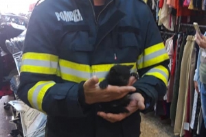 O intervenție mai deosebită! Astăzi, un puiuț de pisică salvat în Baia Mare de pompieri, după ce a rămas captiv într-un perete de rigips al unui magazin din municipiu. Micuța a fost adoptată rapid.