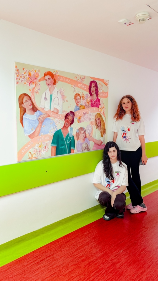 O pictură pe pânză de mari dimensiuni, semnată de Carina Gheție și Doris Coman, a fost amplasată în Secția de Maternitate a Spitalului Județean de Urgență “Dr. Constantin Opriș” Baia Mare
