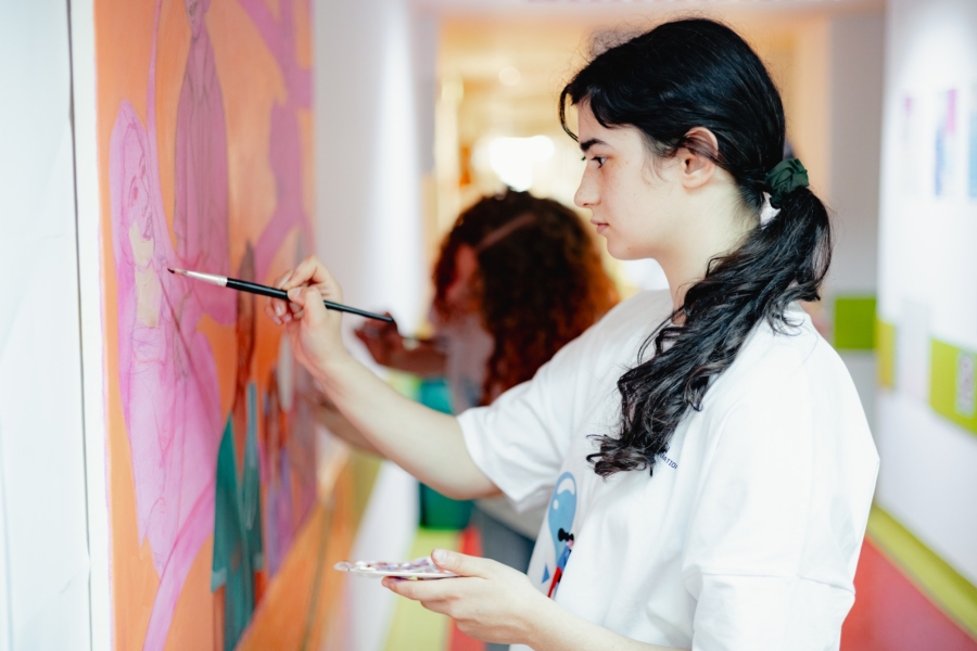 Tinerele Carina Gheție, absolventă a specializării Arte Plastice în cadrul Centrului Universitar Nord Baia Mare și Doris Coman, elevă la Colegiul de Arte Baia Mare, au creat o pictură pe pânză de mari dimensiuni, amplasată în Secția de Maternitate a Spitalului Judeţean de Urgenţă „Dr. Constantin Opriş” Baia Mare.