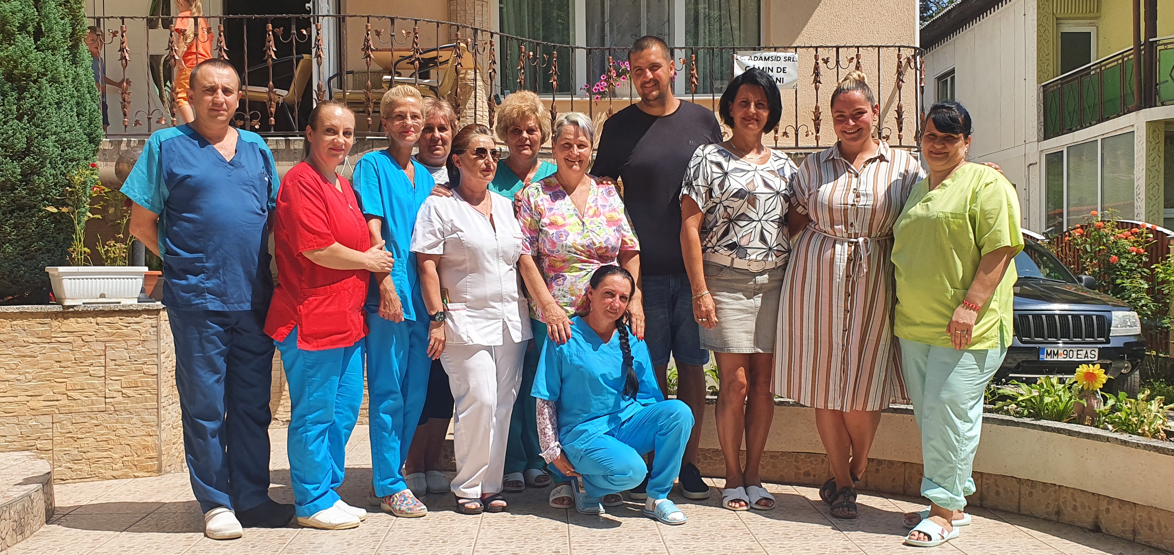 Timp de un an de zile am dormit în același cămin cu ei, am făcut serviciu de noapte ca infirmier, cu toate că aveam personal, i-am protejat ca să se odihnească. Nu este o muncă ușoară. Lumea crede că plătind niște bani pentru aceste servicii, ne rămân nouă în buzunar, ceea ce nu se întâmplă. Sunt niște costuri, sunt niște plăți de făcut, avem medici cu care colaborăm. Acum colaborăm cu medicul psihiatru Paul Bute, cu doamna doctor psiholog Mădălina Palfi, în vederea asigurării tratamentului medicamentos al bătrânilor. Dorim să stagnăm din depresii, din demențe mixte, vasculare, senile, din Alzheimer-uri, din schizofrenii, deși unii sunt chiar tineri, dar au astfel de afecțiuni. Reușim să stagnăm aceste afecțiuni cu ajutorul medicilor care sunt extraordinari și sunt trup și suflet în fiecare săptămână, le oferă tratamentul și îi îndrăgesc pe vârstnici”, arată Stela Pura, administratorul Adamsid.