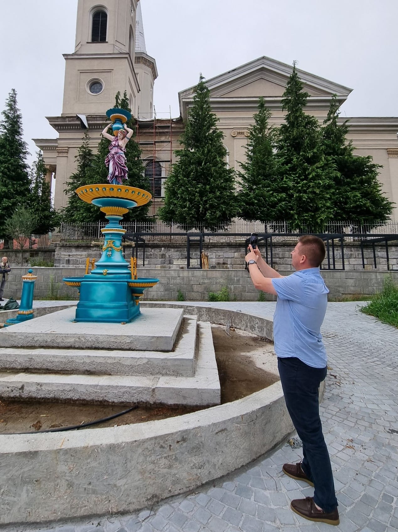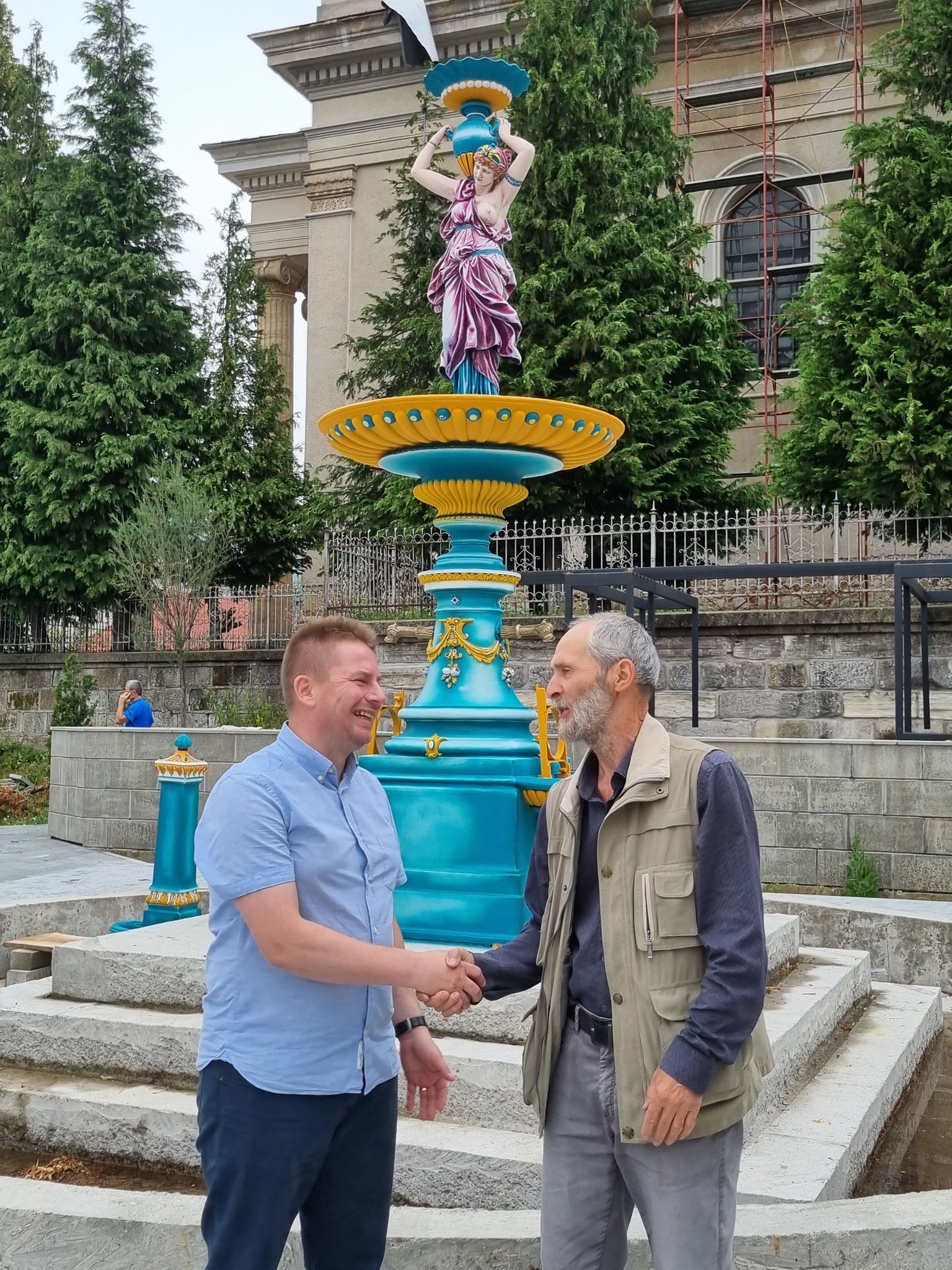 L-am căutat în Ungaria, acolo unde locuiește acum și i-am făcut propunerea de a o picta din nou, odată cu reabilitarea parcului din zona centrală. Cu emoție a acceptat, iar acum, la finalizare, mi-a spus că se simțise dator către comunitate și că a fost o onoare deosebită să o picteze din nou, redându-i culoare și strălucire. Sper că rezultatul vă va plăcea și că în timp Fântâna arteziană va deveni un loc de relaxare și de ce nu, fotografiere pe parcursul plimbărilor prin parc”, arată primarul Alin Sebastian Bîrda.