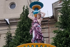 Fântâna lui Stoll în haine noi! Pictorul Balazs Laszlo a terminat pictura „Frumoasei Spria” care va domina piațeta din centrul vechi a orașului, arată oficialii primăriei maramureșene.