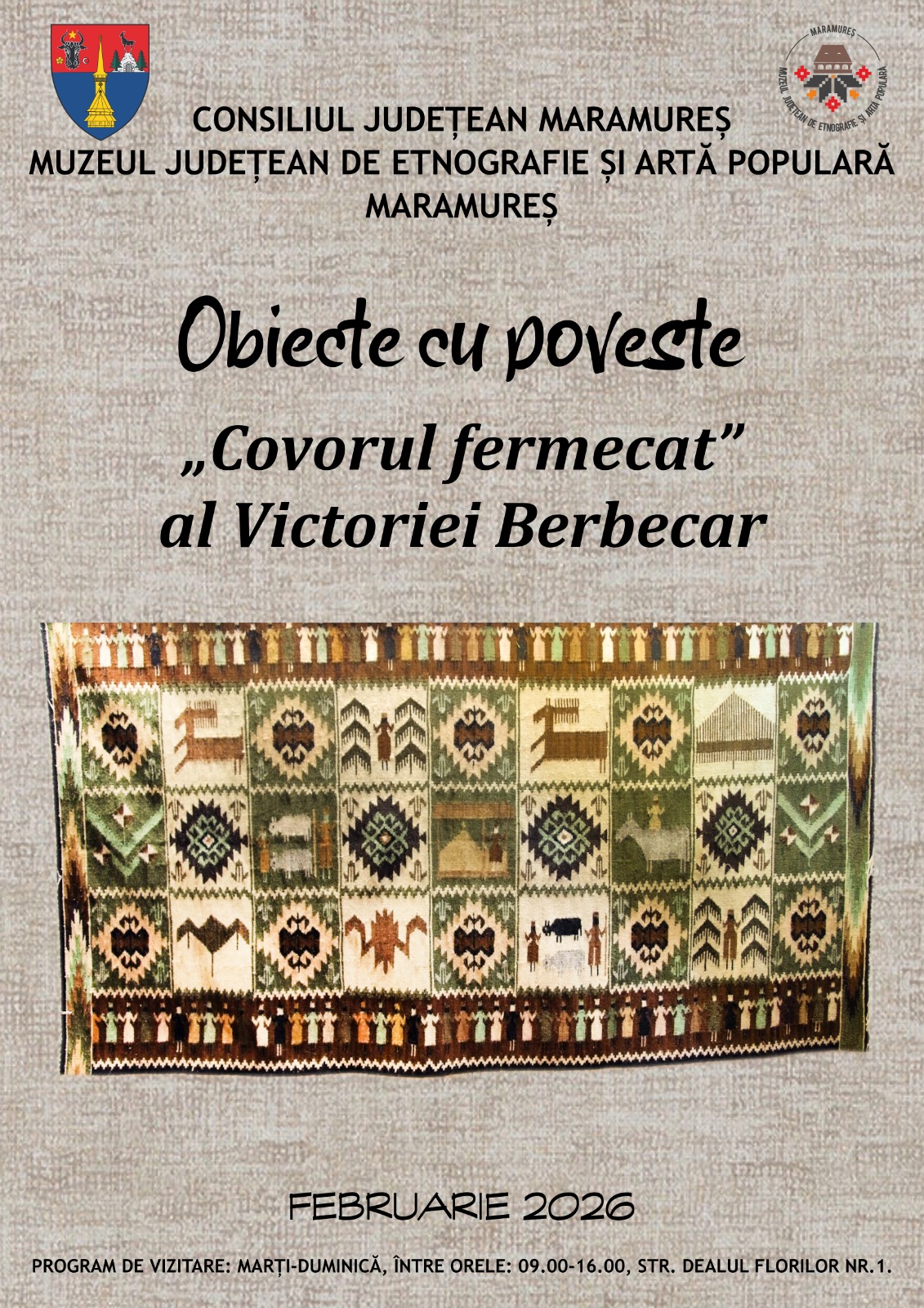Obiectul cu poveste al lunii februarie la Muzeul Județean de Etnografie și Artă Populară Maramureș este „Covorul fermecat” al Victoriei Berbecar. Mai multe aflăm de la Anamaria Nagy, curator: