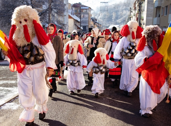 Așa cum știm deja, în preajma sărbătorilor de iarnă, bărbații poartă straie specifice. De regulă sunt de culoare albă, fiind „împodobiți” cu centuri pe care au fost legate clopote ce răsună la fiecare mișcare. De asemenea, ei poartă măști și sunt dotați cu un bici, speriind trecătorii.