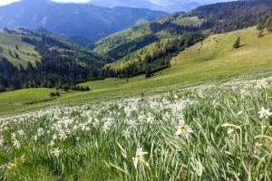 Parcul Național Munții Rodnei: Lângă culmile Maramureșului, foarte aproape de noi, o adevărată minunație a naturii! Narcisele își arată frumusețea!