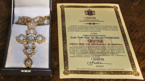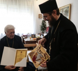 Distincția și o bederniță reprezentând Nașterea Domnului i-au fost înmânate în 30 decembrie, de Vicarul administrativ al Arhiepiscopiei Sibiului, arhimandritul Ioachim Tomoiagă, şi de consilierul cultural al eparhiei, pr. Emanuel Tăvală.