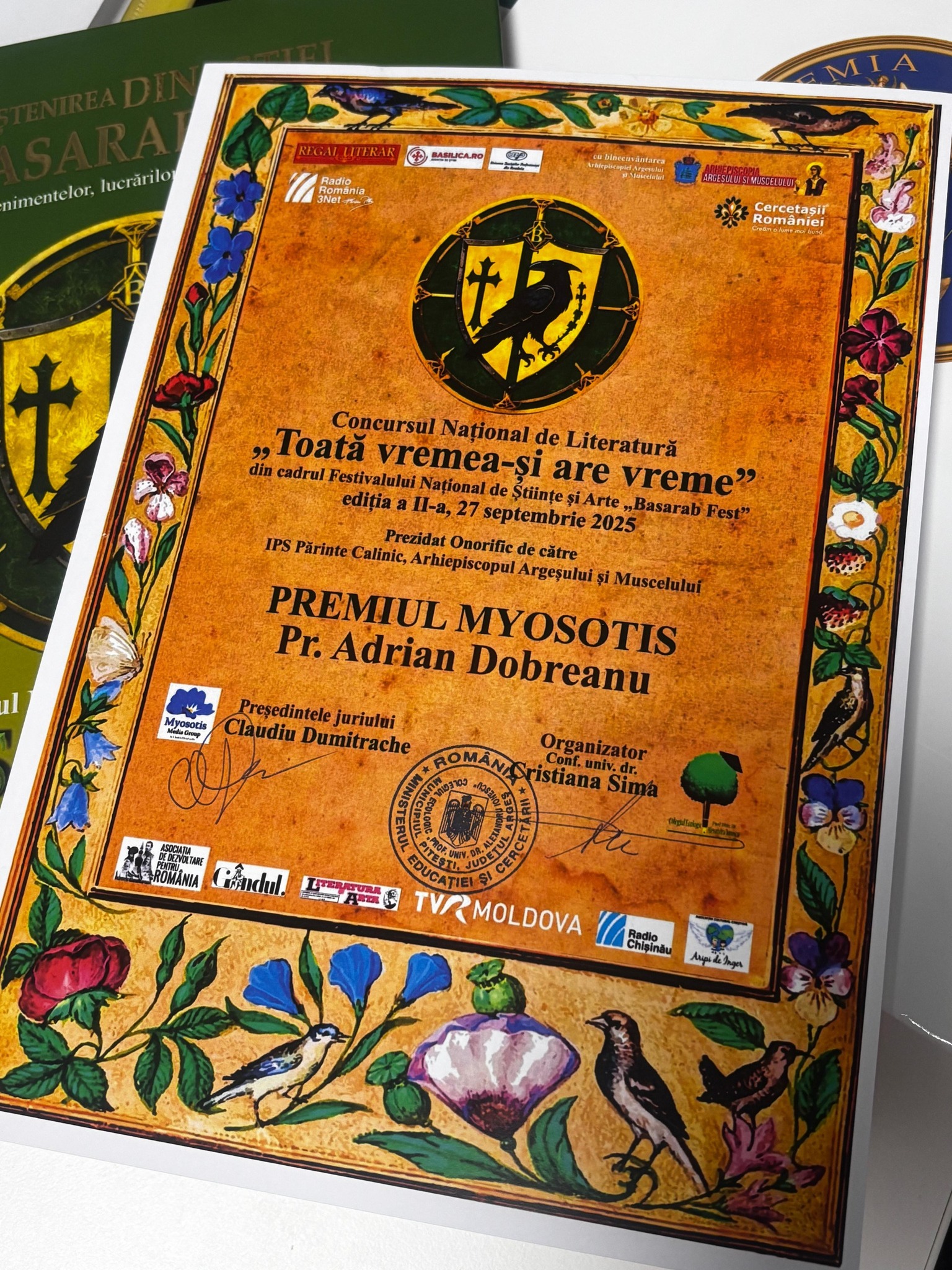 Părintele Adrian Dobreanu a obținut Premiul „Myosotis” la Concursul Național de Literatură „Toată vremea-și are vreme”