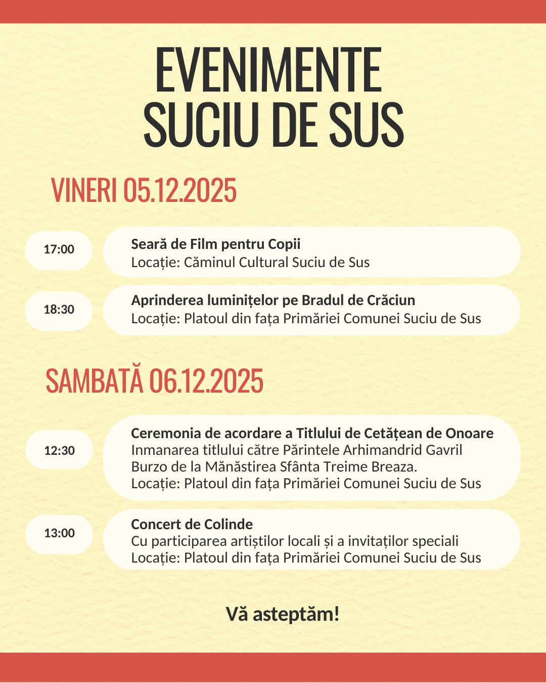 Comuna Suciu de Sus se pregătește pentru un sfârșit de săptămână încărcat de emoție, tradiție și bucurie, odată cu organizarea unei serii de evenimente dedicate întregii comunități.