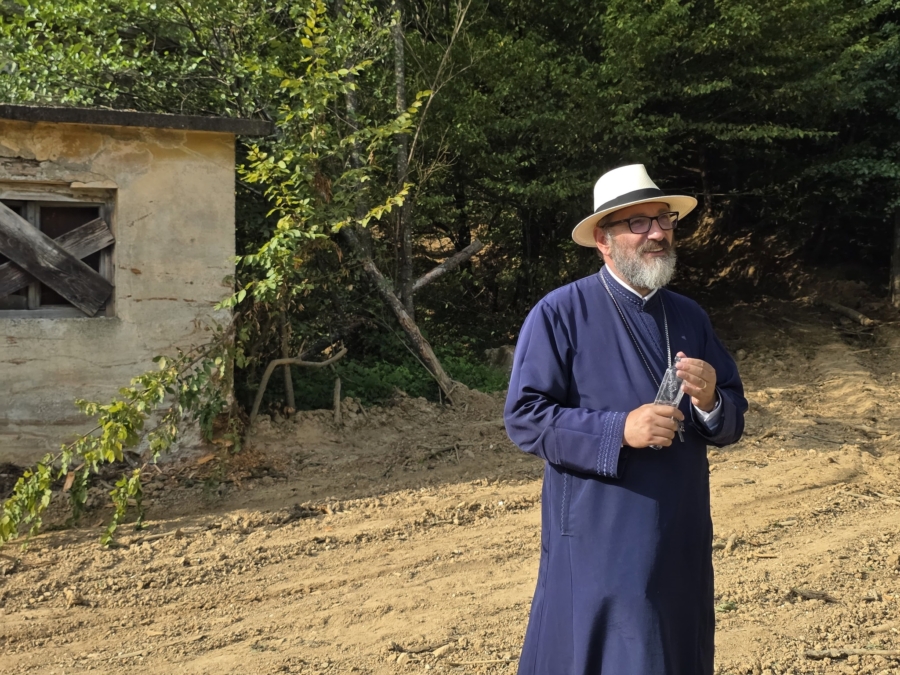 Părintele Constantin Necula, în vizită la Baia Sprie pentru un reportaj despre mină – fostă colonie de muncă forțată