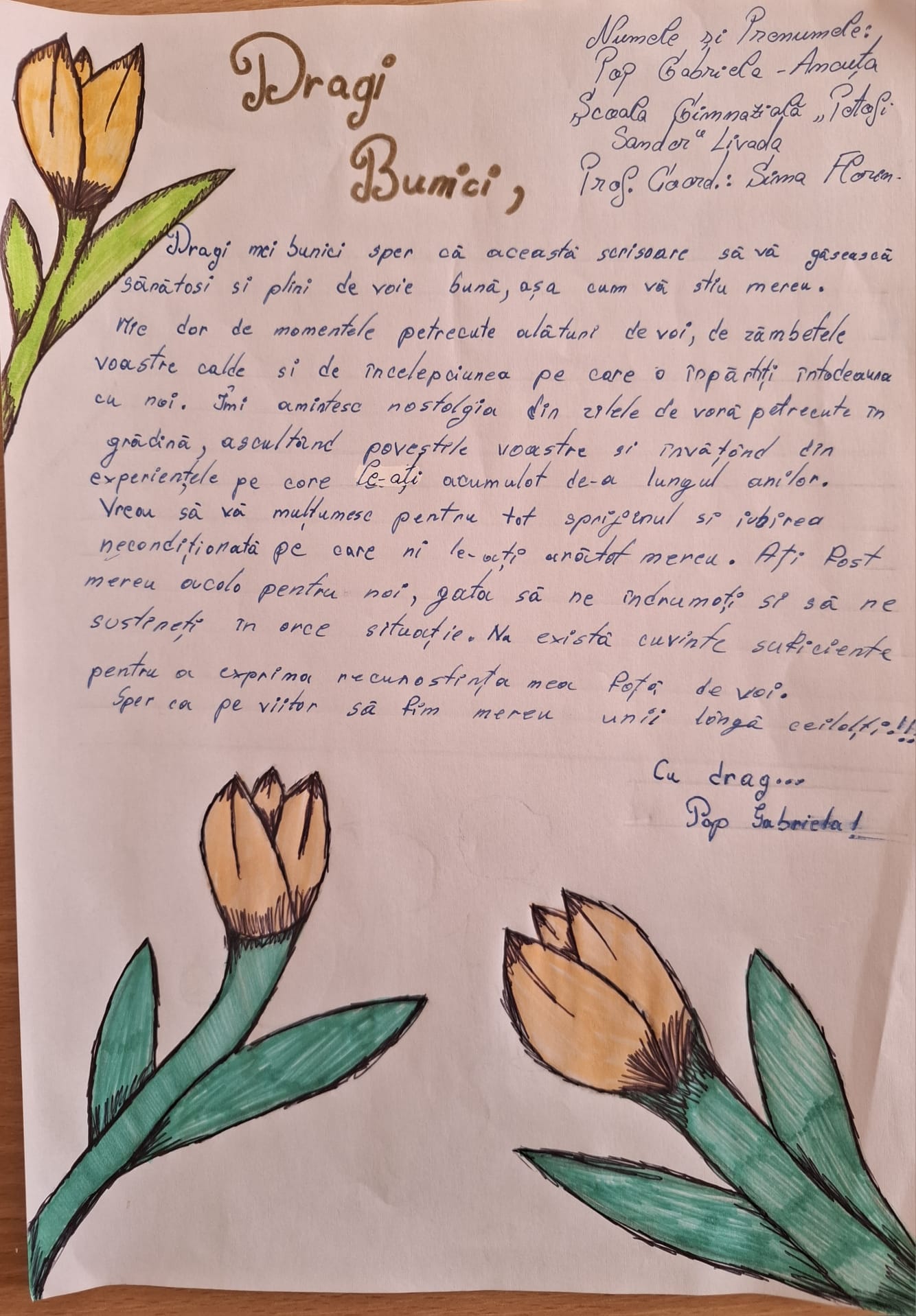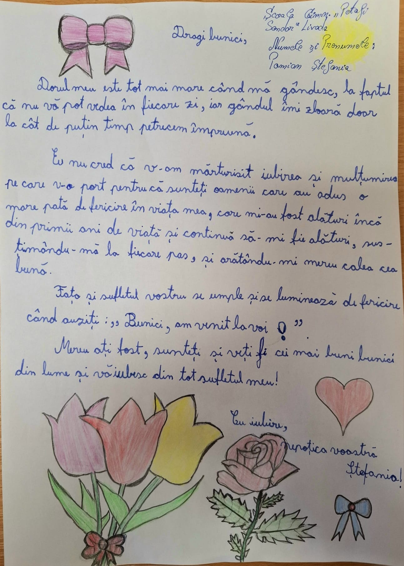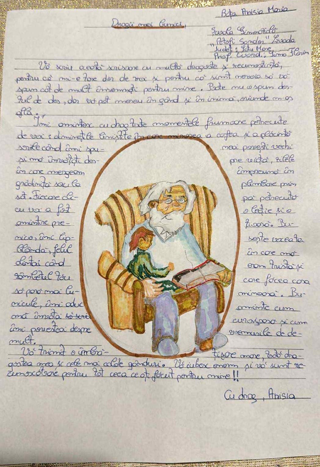 La acest proiect de suflet au avut posibilitatea de a participa elevi din toate ciclurile de învățământ (primar, gimnazial și liceal), care, prin intermediul alcătuirii unei scrisori au dorit să împărtășească bunicilor câteva gânduri frumoase și unice, de dor, de dragoste, de bucurie și de recunoștință pentru faptul că, pe unii dintre copii, sau pe noi, cei de astăzi, ne cresc sau ne-au crescut, pe brațele, lor, bunicii.