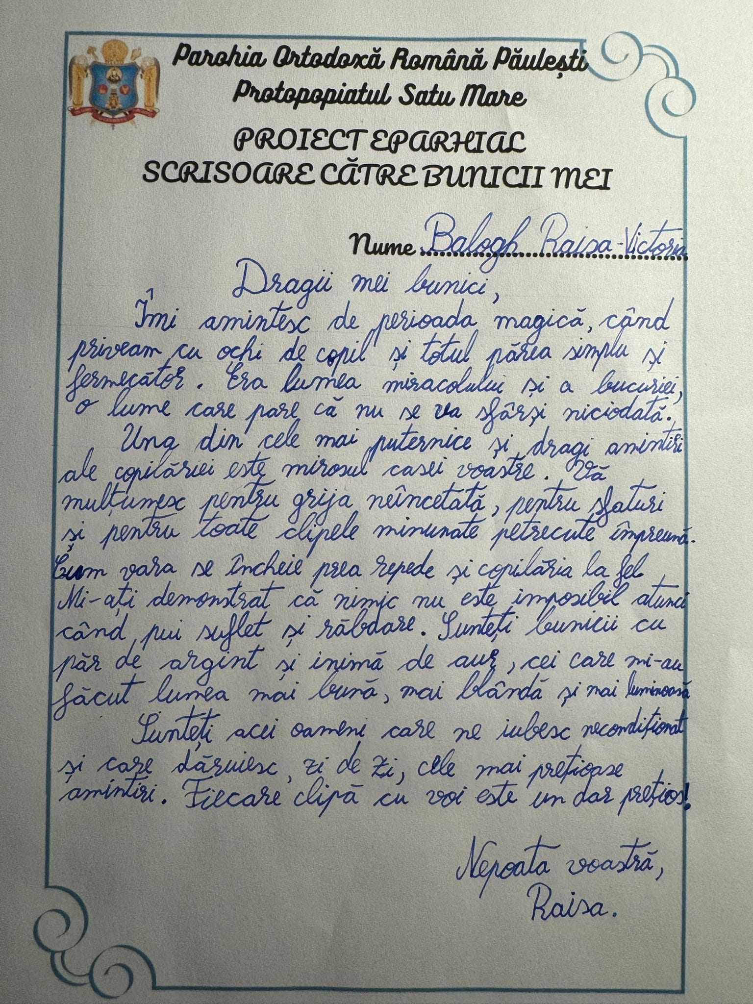 Peste 200 de scrisori au fost trimise în cadrul Proiectului Eparhial intitulat „Scrisoare către bunicii mei”