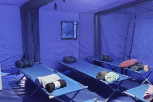 În total, au fost amenajate 16 corturi care au capacitatea de 7-8 locuri, însă ar putea crește numărul, dacă situația o va cere, pentru ca tabăra mobilă să găzduiască până la circa 200 locuri. Persoanele care vor ajunge aici vor putea sta până la 72 ore, arată protocolul instituit în asemenea situații.
