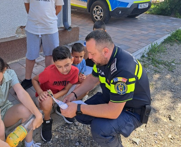 ”Polițiștii Secției 5 Ocna Șugatag au transformat curtea sediului de poliție într-un loc al învățării importanței responsabilității. Printre conversații cu tematici diverse și zâmbete împărțășite cu copiii de la Școala de vară din Sat Șugatag, au început să prindă contur primele idei despre cât de important este să fim atenți și în siguranță. Semnele interesului pentru ceea ce au transmis polițiștii s-au zărit cu ușurință din întrebările pe care cei mici le-au adresat. Polițiștii au avut un răspuns la toate nedumeririle lor și, în plus, ca și când ar fi reușit să le citească gândurile, au completat informațiile cu expunerea unor situații, ce au reprezentare în realitate”, arată reprezentanții IPJ într-un comunicat.
