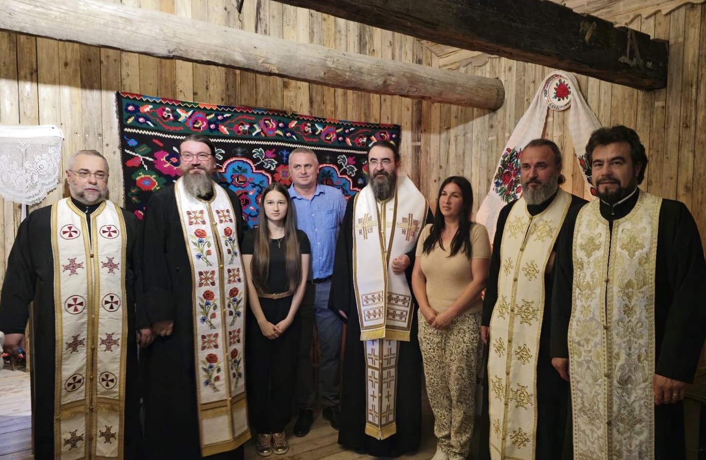 Căsuța a fost sfințită de un sobor de preoți și diaconi, în frunte cu IPS Iosif, mitropolitul Europei Occidentale și Meridionale, originar din Vișeu de Jos. Special pentru această ocazie, pentru a întregi micul ”univers” maramureșean și pentru a-l întâmpina pe IPS Iosif ”ca acasă”, am adus, tocmai din Vișeu de Jos, costume tradiționale din colecția personală, pe care fetele de aici le-au purtat cu atâta noblețe ! (Mulțumesc, fetelor ! Mulțumesc, Elena !)
