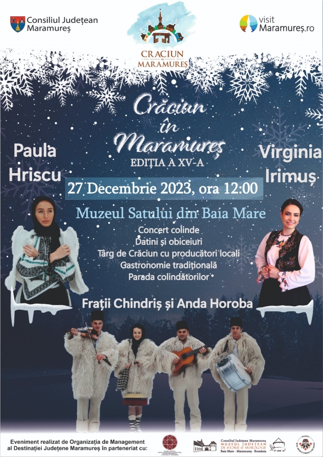 Povestea Crăciunului autentic, tradițional, bogat în datini și obiceiuri continuă. După ce vă veți bucura de Sfintele Sărbători în tihna familiei, vă invităm să sărbătoriți Crăciunul și în mijlocul comunității. În data de 27 decembrie, în Muzeul Satului din Baia Mare va avea loc cea de-a XV-a ediție a evenimentului „Crăciun în Maramureș”. Această ediție este organizată de Organizatia de Management al Destinatiei Maramures și Consiliul Judeţean Maramureş, în parteneriat cu Muzeul Județean de Etnografie și Artă Populară Maramureș, Muzeul Județean de Istorie și Arheologie Maramureș și Centrul Județean pentru Conservarea și Promovarea Culturii Tradiționale „Liviu Borlan” Maramureș (Centrul Culturii Tradiţionale Maramureş), se precizează pe pagina Visit Maramureș.