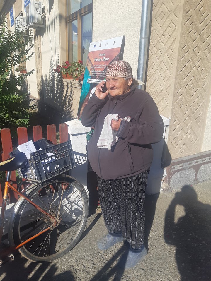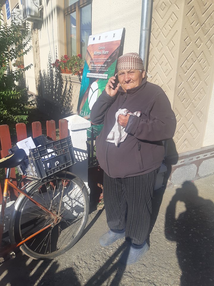 Cornelia Ștef, fosta poștășiță din Mireșu Mare, va face 74 de ani anul acesta în noiembrie. În localitate, o știe absolut toată lumea. Ca atunci, are un batic în cap și e îmbrăcată bine. Ea știe că, pe bicicletă, în deplasare, simți mai bine frigul și îți intră în oase de nu te vezi.