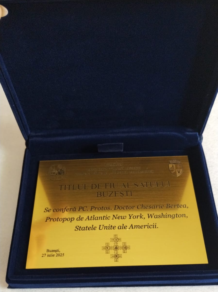 Pr. protosinghel dr. Chesarie Bertea, Protopop de Atlantic New York-Washington, a primit Titlul și Diploma de „Fiu al satului Buzești”