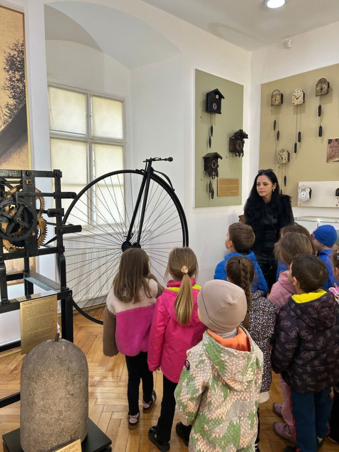 Copiii din grupa mare Step by Step de la Grădiniță cu program prelungit “Otilia Cazimir”, alături de doamnele educatoare Oana Pavel și Maria Hotico, au participat la o vizită educativă la Muzeul de Istorie și Arheologie Maramureș, unde au explorat colecția de ceasuri, pentru a aprofunda tema săptămânii „Timpul și măsurarea lui”. Activitatea a avut scopul de a-i familiariza pe copii cu diferite tipuri de ceasuri și de a le trezi interesul pentru modul în care oamenii au măsurat timpul de-a lungul istoriei.