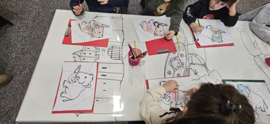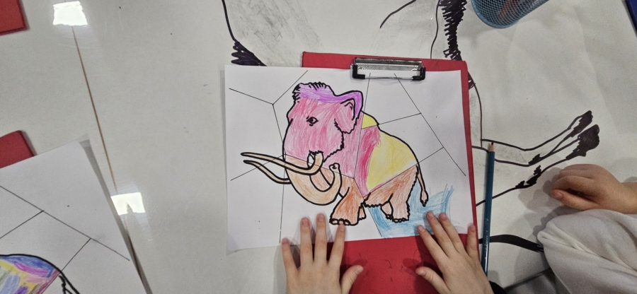 Cei mici au descoperit cum au apărut primii oameni, cum trăiau, cu ce se ocupau în viața de zi cu zi și animale pe care le vânau în acele vremuri, după care, în cadrul unui atelier creativ, copiii au colorat cu entuziasm un mamut și un rinocer lânos.