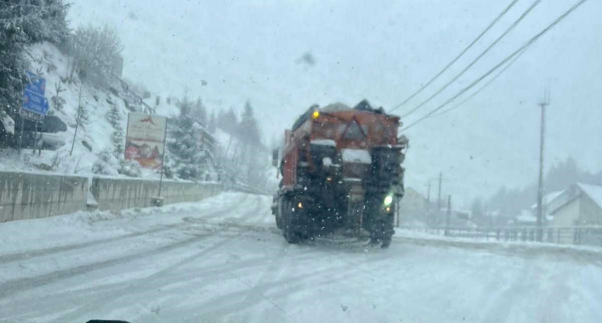 „Ninge la Borșa și în pasul montan. În acțiune sunt două utilaje (UNIMOG cu lamă și răspânditor, autobasculantă cu lamă și răspânditor). Nu sunt semnalate în prezent perturbări sau probleme în trafic”, informează Comitetul Județean pentru Situații de Urgență.