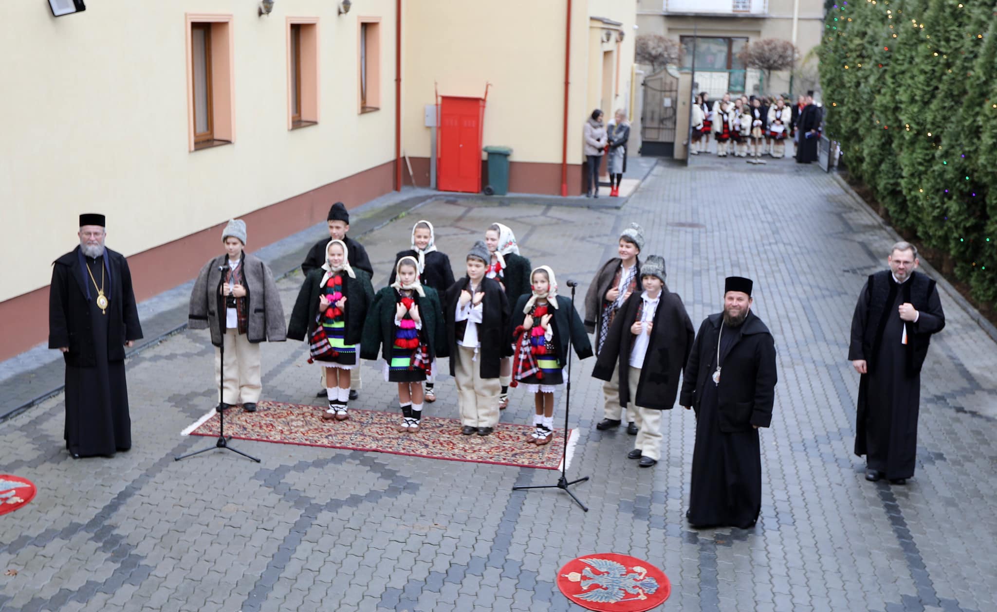 Vineri, 18 decembrie, Preasfințitul Părinte Iustin, Episcopul Maramureșului și Sătmarului, împreună cu Preasfințitul Părinte Timotei Sătmăreanul, Arhiereu vicar, au primit, în curtea Centrului Eparhial din Baia Mare, primii colindători.