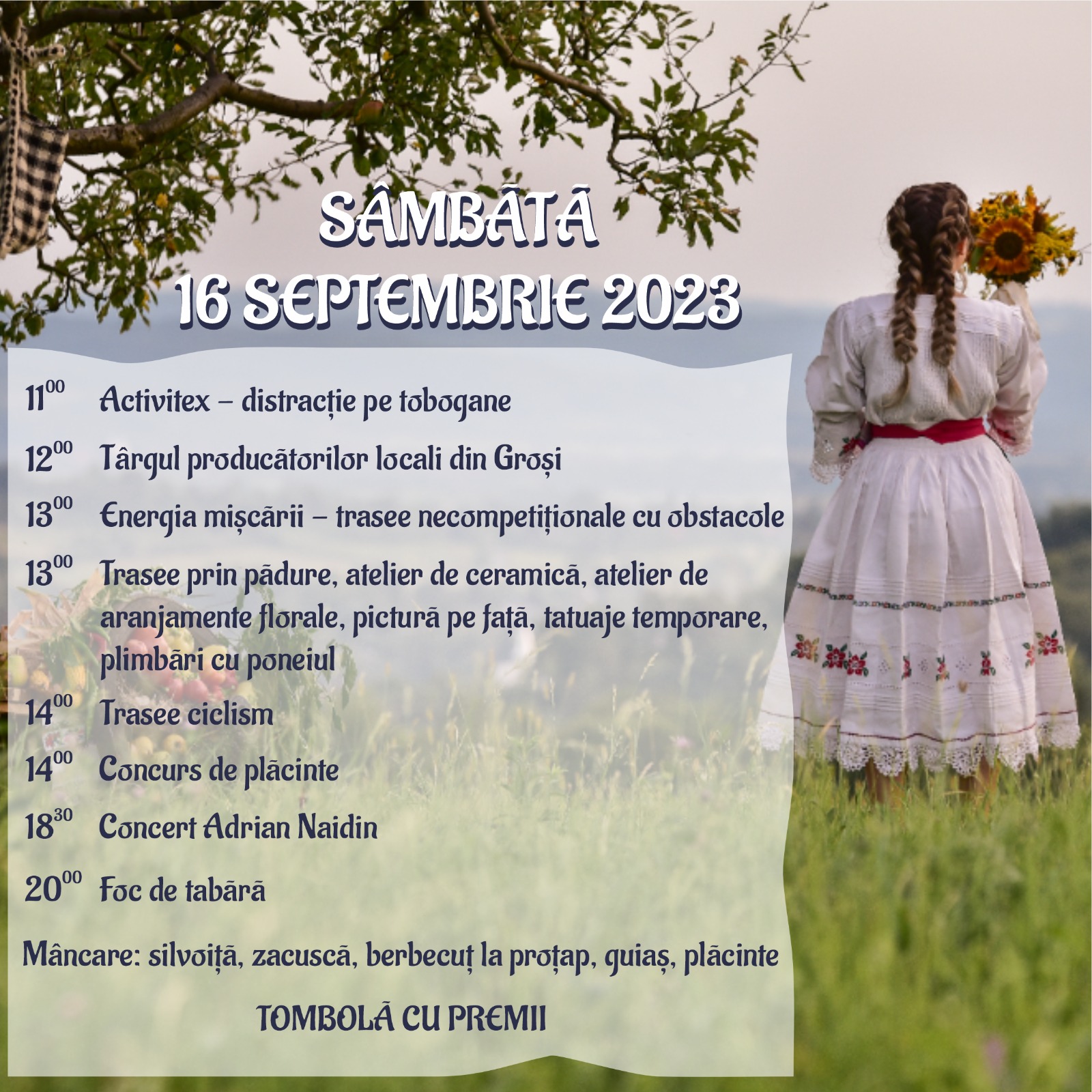 „Un muzician deosebit, cu un repertoriu de poveste, extrem de apreciat pe toate scenele unde a cântat, ne va cânta și încânta într-un decor magic la Sărbătoarea Toamnei. Vă îndemnăm să nu ratați întâlnirea cu Adrian Naidin de sâmbătă, 16 septembrie, de la ora 18,00, la Sărbătoarea Toamnei din Groși ce va avea loc pe pajiștea de la intrarea în comună. Vă așteptăm în număr cât mai mare!”, arată organizatorii.