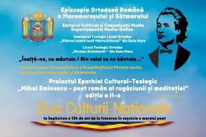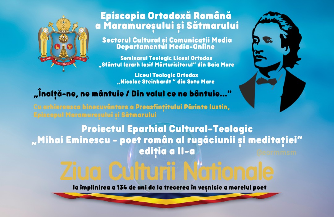 Cu binecuvântarea Preasfințitului Părinte Iustin, Episcopul Maramureșului și Sătmarului, Sectorul Cultural și Comunicații Media-Online împreună cu Sectorul Teologic-Educațional din cadrul Episcopiei Ortodoxe Române a Maramureșului și Sătmarului, în parteneriat cu Seminarul Teologic Liceal „Sfântul Ierarh Iosif Mărturisitorul” din Baia Mare și Liceul Teologic Ortodox „Nicolae Steinhardt” din Satu Mare, a lansat, în perioada 10-25 ianuarie, Proiectul Concurs Eparhial Cultural-Teologic intitulat „Mihai Eminescu – poet român al rugăciunii și meditației”, ediția a doua, prilejuită de Ziua Culturii Naționale, arată Biroul de Presă al Episcopiei Ortodoxe Române a Maramureșului și Sămarului.