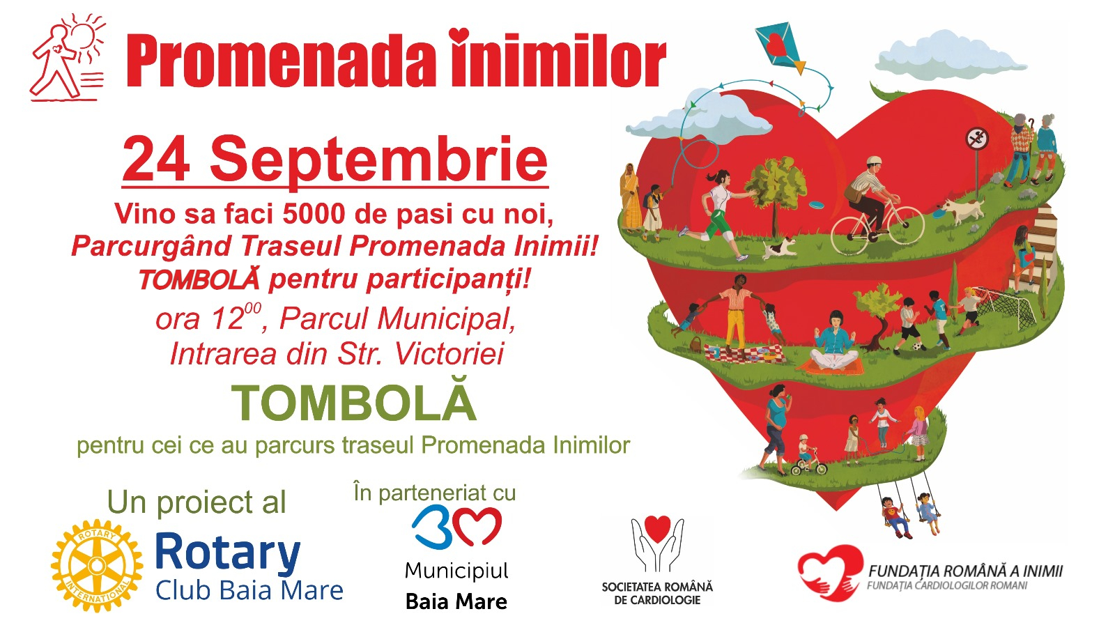 Rotary Club Baia Mare vă propune și în 2023 „Promenada Inimilor”, proiect ce dorește să încurajeze populaţia municipiului să facă mişcare, ca mijloc de prevenţie a bolilor cardiovasculare, cu ocazia Zilei Mondiale a Inimii ce se sărbătorește în data de 29 septembrie a fiecărui an.