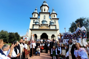 Un sobor de 18 preoţi şi 4 diaconi a oficiat Sfânta Liturghie de hram, pe Altarul de Vară, în faţa unui mare număr de credincioşi, care au umplut curtea spaţioasă a bisericii. Deşi a fost zi lucrătoare pentru salariaţi, la sărbătoarea credincioşilor de aici au sosit şi câteva procesiuni de pe Valea Izei, împreună cu preoţii lor, interpretând pricesne şi cântece religioase, după o tradiţie care există în zonă de sute de ani.