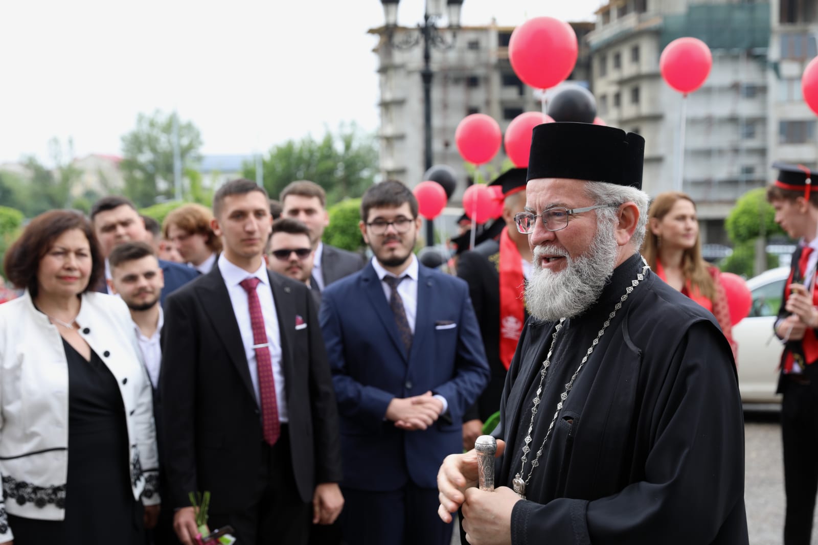 „Avem 550 de elevi pentru că din anul anul 2014 am fuzionat cu Liceul Sanitar, astfel încât școala noastră teologică este alcătuită din două secții, de teologie, vocațională și de științe ale naturii, și, de fiecare dată, ca și începutul anului școlar, finalul îl facem în catedrală. Este o solemnitate care, datorită spațiului, își sporește frumusețea și emoția momentului, părinții sunt foarte fericiți să îi însoțească aici, în această atmosferă, unde primesc aprecierile pentru cei patru ani de studiu și diplomele de absolvire; iar cei mai buni primesc și premiile. Le mulțumim și le arătăm prețuire și apreciere multă pentru dascălii de la cele două secții, elevilor pentru opțiune și părinților susținere”, a explicat Preasfințitul Părinte Iustin.