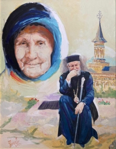 În reprezentarea tabloului sugestiv și cu totul aparte pictorul a avut multă inspirație și viziune! Preasfințitul Părinte Iustin, meditează, iar măicuța după trup – Monahia Magdalena, veghează! Astfel, în acest tablou sunt două mame: cea după trup – Monahia Magdalena Hodea și cea duhovnicească – Mănăstirea „Sfânta Ana” din „Muntele cel Sfânt” al Rohiei, lăcașul de metanie al Preasfinției Sale.