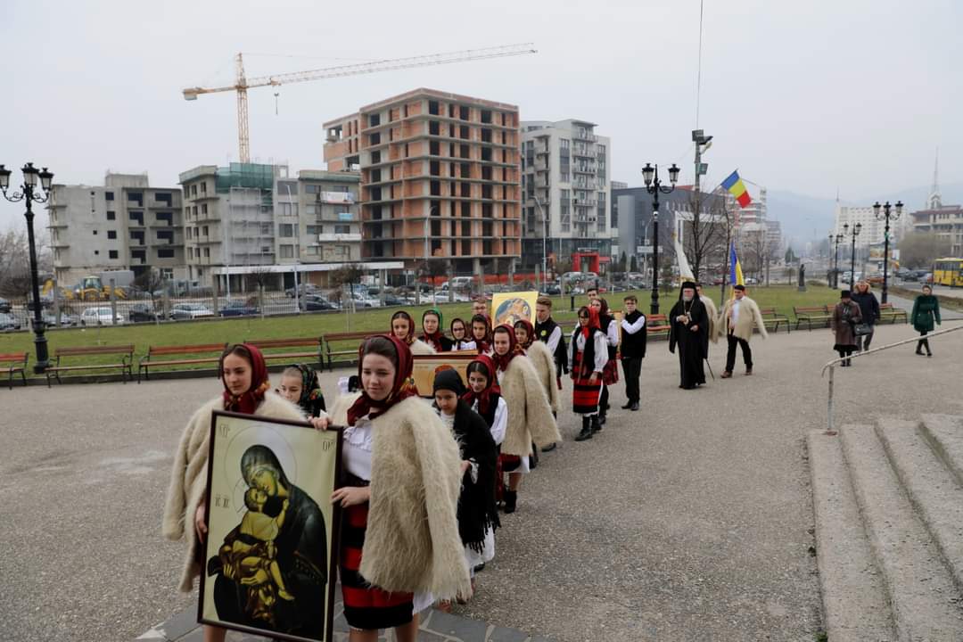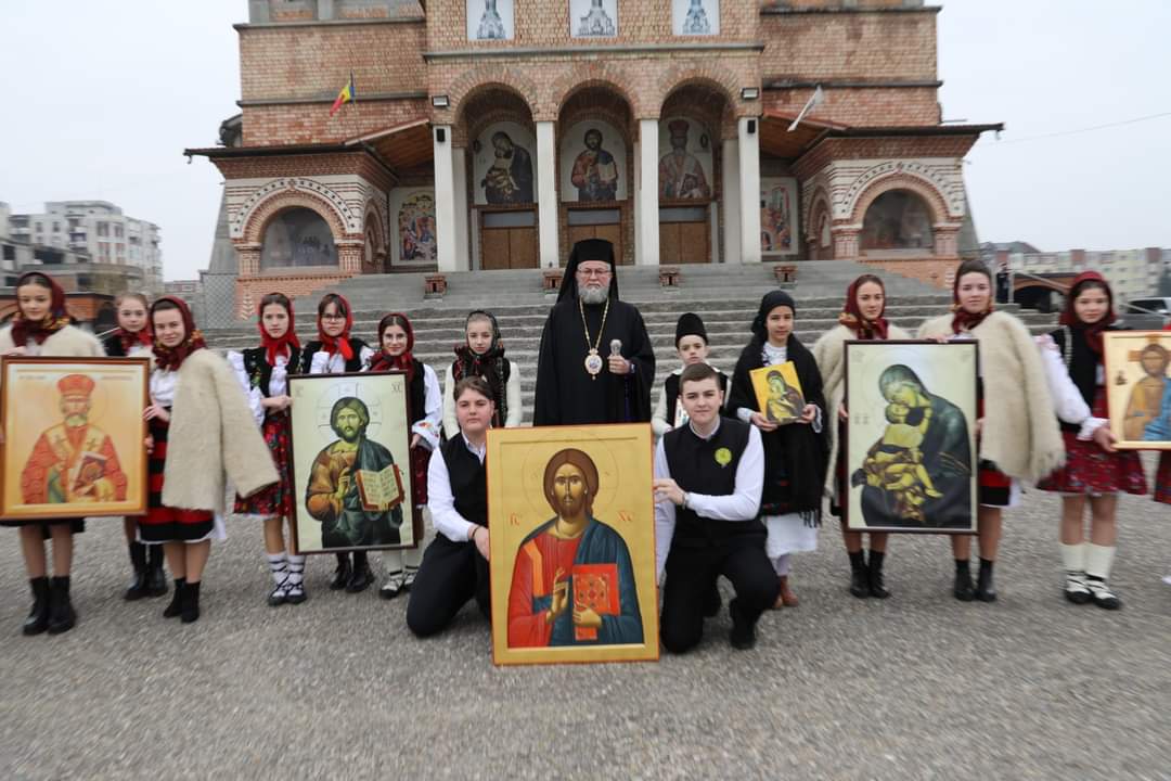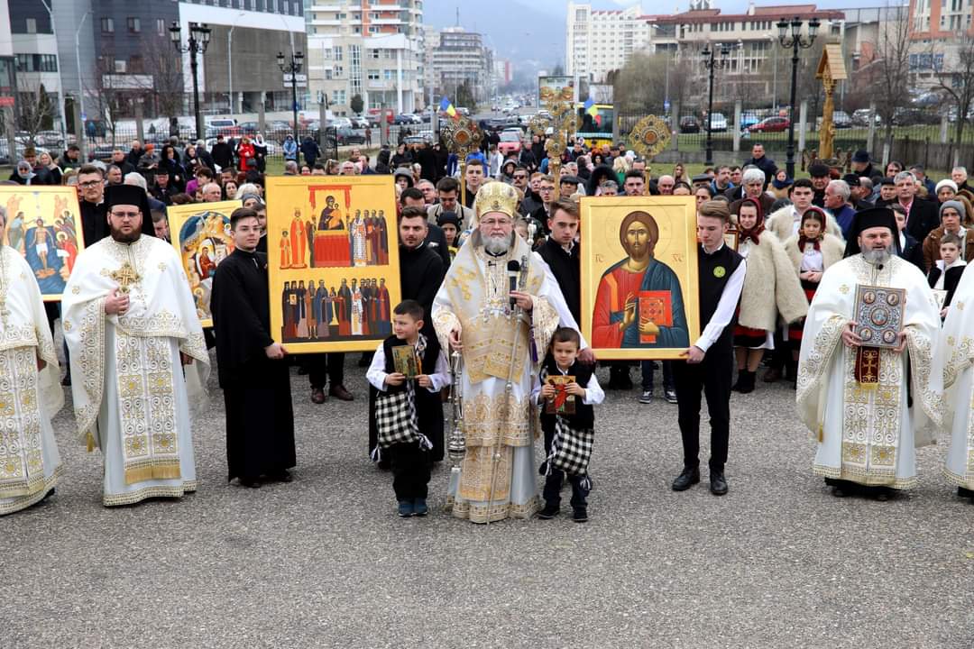 Credincioşii au pornit, la sfârşitul Sfintei Liturghii, într-o procesiune în jurul Catedralei, cu icoane în mâini, împreună cu întreg soborul slujitor din această duminică importantă pentru dreapta credinţă. Procesiunea s-a încheiat pe esplanada Catedralei Episcopale „Sfânta Treime”, unde au fost rostite câteva ectenii şi otpustul, adică formula de încheiere a Sfintei Liturghii. Deşi pe un frig de 1-2 grade C, mulţimea credincioşilor a cinstit aşa cum se cuvine Duminica Ortodoxiei, prin venerarea sfinţilor de pe icoanele pe care le purtau în mâinile lor.